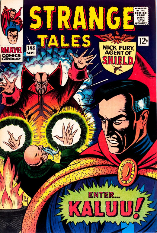 *[FOOTNOTE: With Jack Kirby drawing and Joe Simon inking and the two of them plotting and writing, the two became regular partners on numerous comics and even creating genres for comics (including Romance Comics). One of their staples was creating a group of youngsters - evoked by the Sentinels of Liberty - with extraordinary legal guardians that placed them into fantastic situations, springboarding their adventures, such as the Newsboy Legion (orphans who adventured alongside the Golden Age super-hero The Guardian) & the Boy Commandos (an elite, international commando squad orphans overseas, led by Captain Rip Carter) for DC/National and Boys' Ranch, a cowboy title for Atlas/Marvel. The Newsboy Legion, from Star Spangled Comics, featured another hero with a shield (though, this time in the shape of a police badge), The Guardian. Upon leaving Timely shortly after completing the first few issues of Captain America, Simon & Kirby created Boy Commandos which was, arguably, National/DC's biggest selling title. Kirby would become the co-father of the Marvel Age of Comics and - in the first 3 years of having the new Marvel Universe - create or co-create characters/groups such as Captain America, the Fantastic Four (Reed Richards/Mr. Fantastic, Ben Grimm/The Thing, Sue Storm/The Invisible Girl/Woman, Johnny Storm/The Human Torch II), The Skrulls, Victor Von Doom/Doctor Doom, The Puppet Master, Alicia Masters, The Impossible Man, Uatu, The Watcher, The Kree, The Supreme Intelligence, Ronan the Accuser, Super-Skrull/Kl'rt, The Mole Man, Ant-Man and The Wasp, The Hulk, Thor, Iron Man, The Avengers (made up of the previous 5 characters), The X-Men (Professor Charles Xavier, Cyclops, Marvel Girl/Jean Grey, The Beast, Angel and Iceman) Magneto and the Brotherhood of Evil Mutants (Scarlet Witch, Quicksilver, Mastermind, The Frog), Kang the Conquerer, Nick Fury and S.H.I.E.L.D. Within another three years, he would also create or co-create The Inhumans (Black Bolt, Medusa, Gorgon, Karnak, Triton, Lockjaw, Crystal and Maximus), The Alpha Primitives, Wyatt Wingfoot, Galactus and the Silver Surfer, Black Panther (who existed before the Black Panther Party), Ulysses Klaw/Klaw, The Negative Zone, Blastaar, Annihilus, "Him"/Adam Warlock and multiple supporting characters. Kirby briefly defected to the Distinguished Competition (DC) starting in 1970, where he created (solo) Darkseid and The New Gods (too many to list), Kamandi, The Demon, The Sandman, Atlas and a host of others and their supporting characters. He returned to Marvel in 1975 to create (again, solo) The Eternals, another race of godlike alien beings who fit the Olympic pantheon based on the "Ancient Astronauts" psuedoscience hypothesis that extraterrestials had visited earth, inspiring myths and legends, as well as The Celestials. The Titanians (Kronos, Mentor, Thanos, Starfox, Demeityr, etc.) and The Uranians (Uranos, Sui-San, etc.) were retconned not long after as also being Eternals.